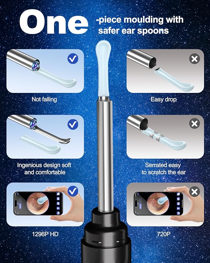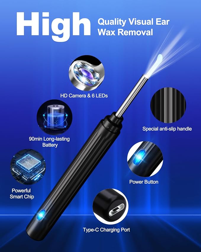Este limpiador de oídos con cámara HD te permite ver en tiempo real lo que estás haciendo, evitando empujar la cera hacia adentro o lastimarte.