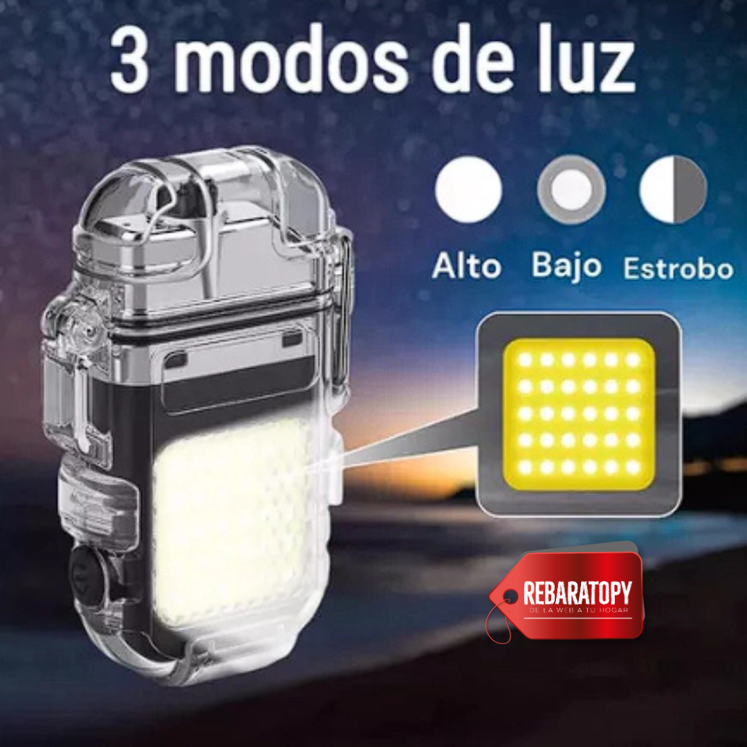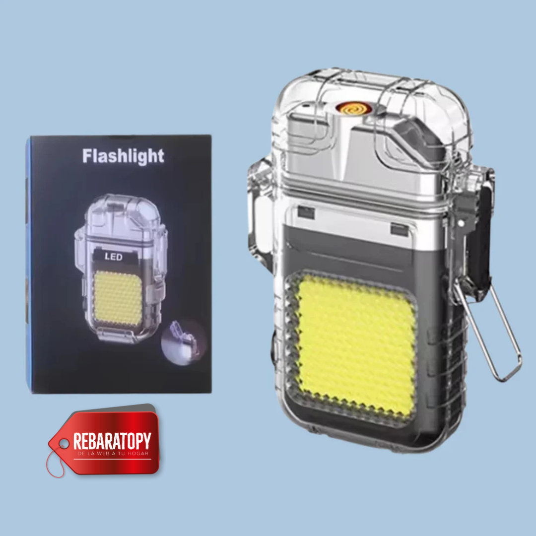 Este encendedor eléctrico recargable con linterna funciona con resistencia caliente, sin gas, sin llama y 100% a prueba de viento.