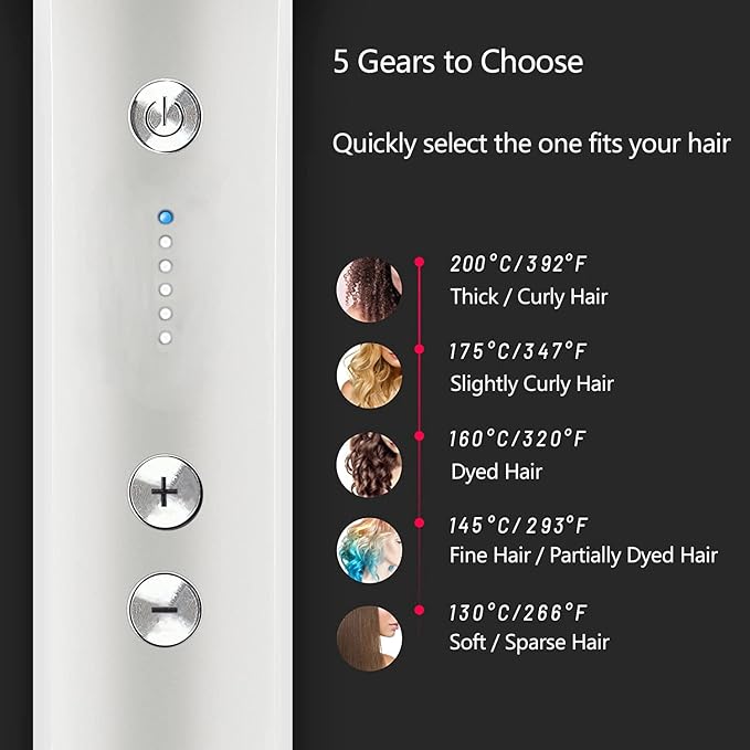 Temperatura ajustable según tu tipo de cabello (140°C a 200°C)
